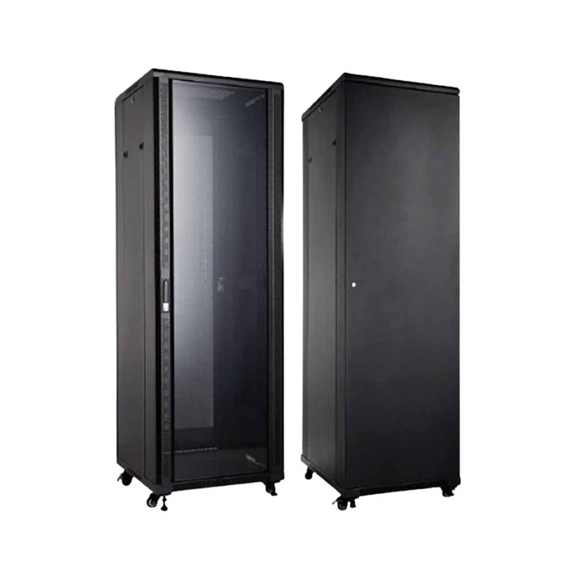 Featuring a glass front door for clear visibility and protection, along with a solid rear door and removable lockable side panels, this rack ensures maximum accessibility for maintenance and cable management. Its compact design makes it suitable where space is limited, while still delivering the robustness and performance needed for professional IT infrastructure.