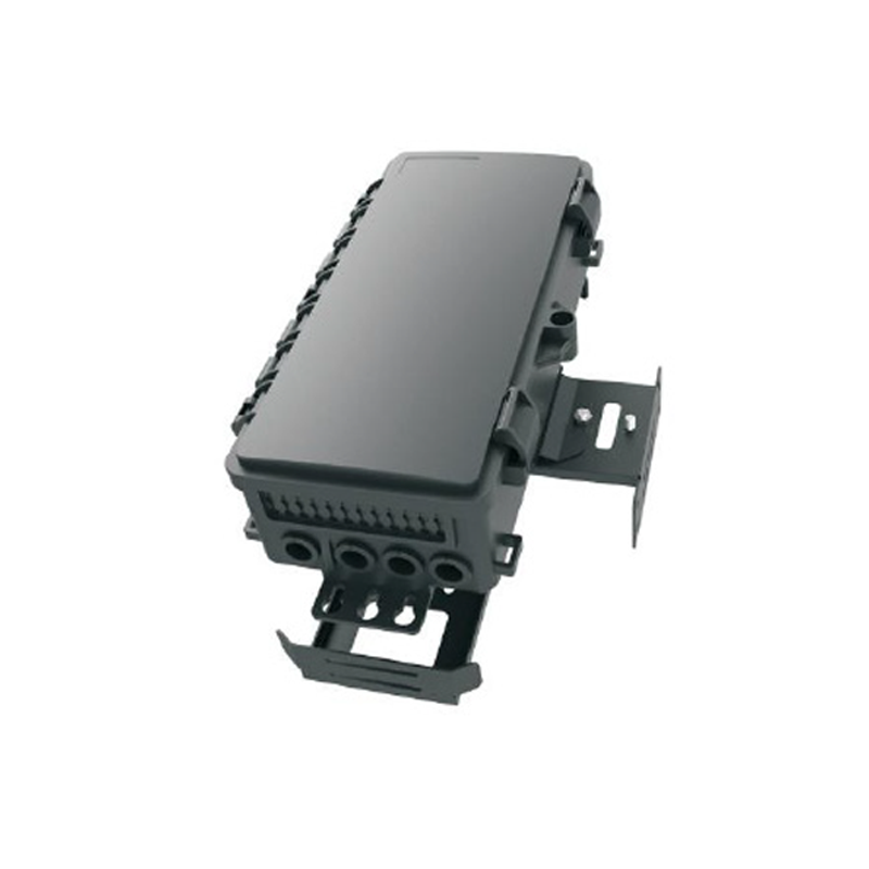 Built from heavy-duty PC+ABS UL-94-V0 flame-retardant material, the node is IP56-rated, providing robust protection against dust and water ingress. Its design supports cable mid-span access with a dedicated storage bracket for feeder and drop cables, ensuring reliable fibre management in aerial installations.
