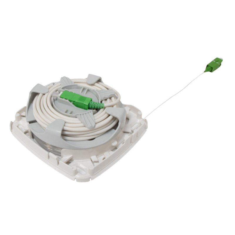 The eline® Extension Box Transparent Cable 1FO 40M SC/APC is an elegant, pre-terminated fibre optic solution designed for rapid and discreet deployment inside customer premises. Featuring 40 metres of transparent 0.9mm fibre and an additional 3 metres of 2.8mm white LSZH cable—both with SC/APC connectors—this unwinder box enables simple and secure connection between an ONT and the customer's point of entry. Its compact, neat design ensures easy mounting in residential spaces while ensuring a protected fibre loop with minimum bend radius maintenance. Ideal for FTTH installations where aesthetics and reliability are paramount.