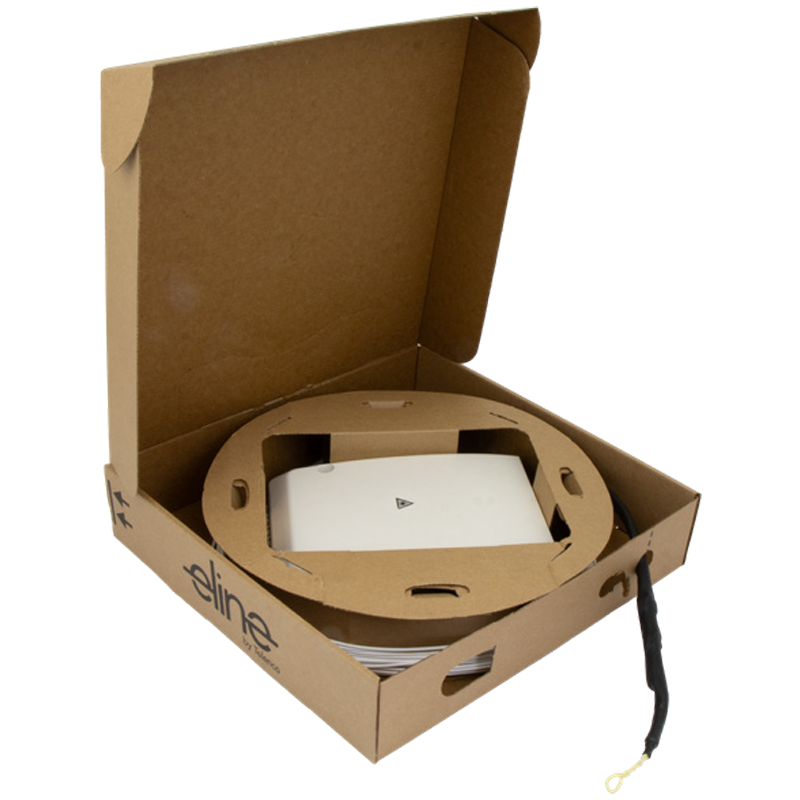 The eline® FB Reel 12F is a compact, pre-connectorized fibre solution designed for fast, reliable deployment from the floor to the building entry point (BEP). With capacity for up to 12 LC/APC connections, the FB Reel ensures secure fibre management in multi-dwelling units (MDUs) and commercial buildings.