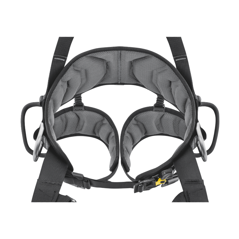 Comfort is prioritised through contoured foam padding with breathable lining across all contact areas, including shoulder straps, waistbelt and leg loops. The semi-rigid waistbelt and leg loops deliver excellent support, while flexible dorsal straps enhance freedom of movement when working at height.