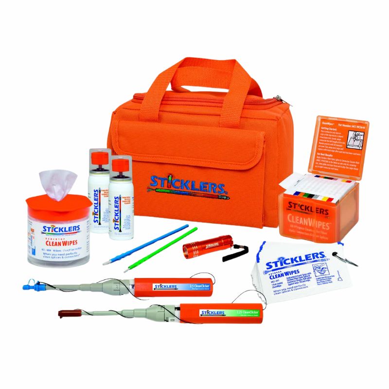 Each kit features the unique Sticklers™ nonflammable cleaning fluid that replaces IPA alcohol and makes 'wet-dry' cleaning a snap. They also feature the best-selling CleanWipes™ 90 for benchtop cleaning, giving techs the lowest cost-per-cleaning without lint, fibers or dust getting on the end-faces. This eliminates time-wasting re-cleaning and minimizes expensive repair call-outs. With this kit the time-saving Sticklers™ cleaners are in a “go anywhere, clean anything” package, giving every tech all the tools they need to get the job done right the first time.